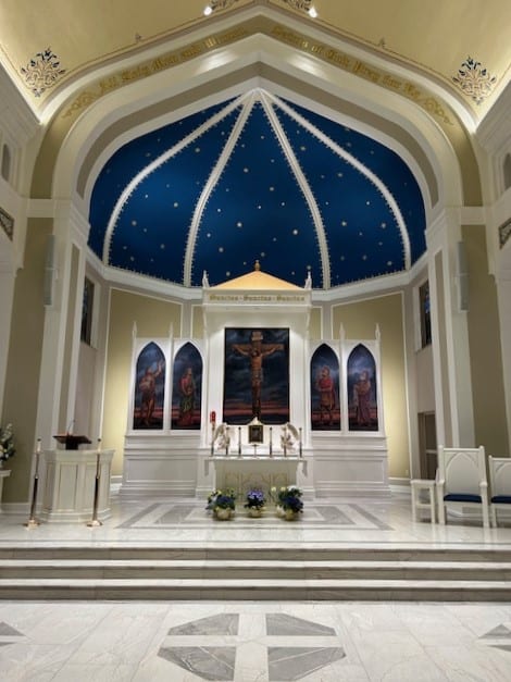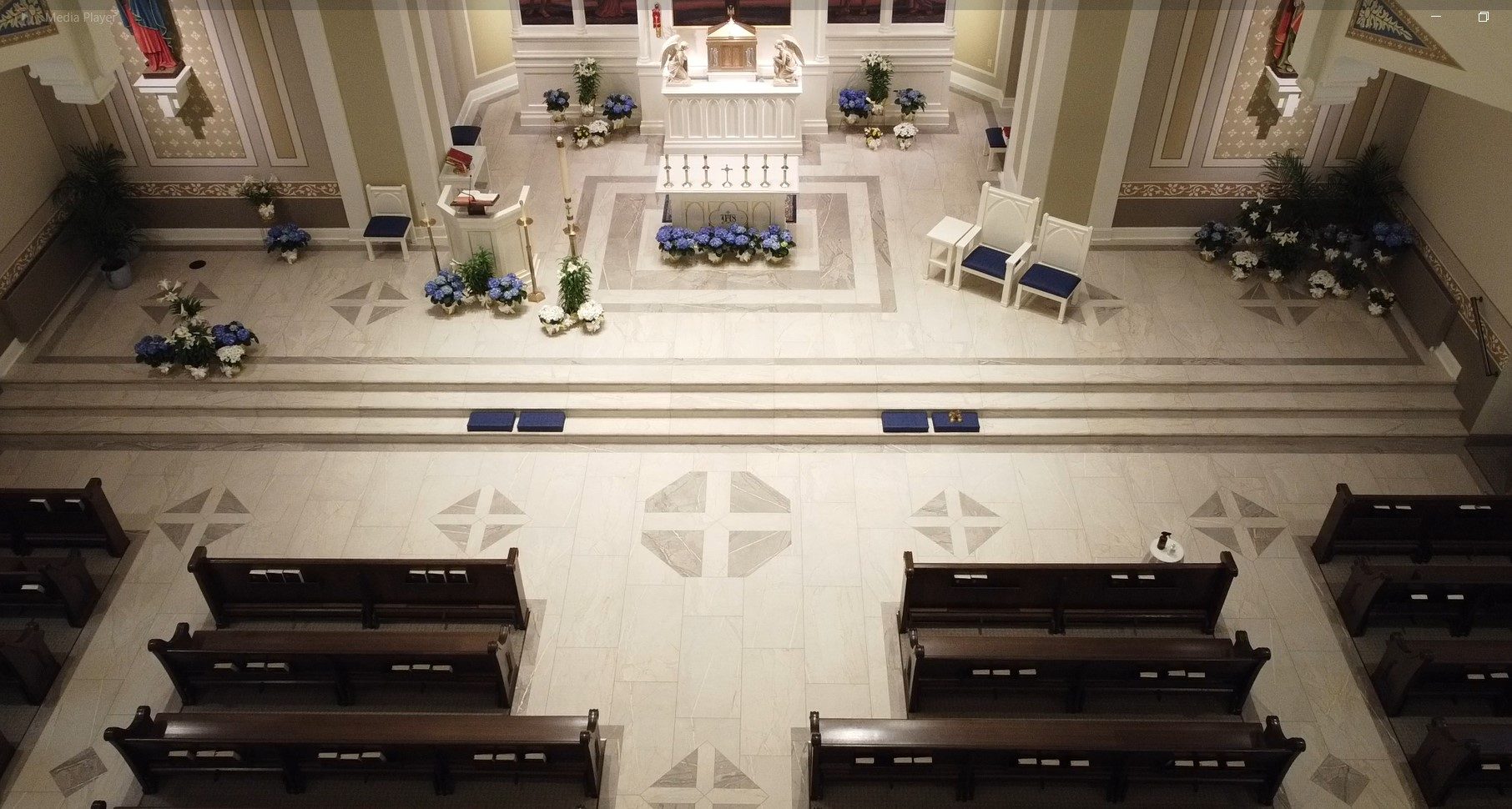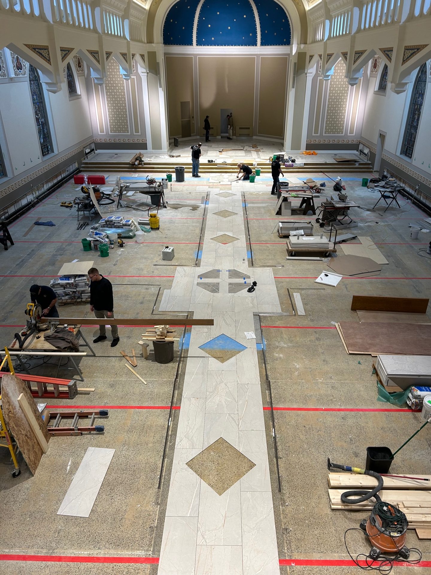 Challenges: Making the custom design of the priest come to life throughout his 100+ year-old-church with large format porcelain tile. Also having to carefully install over a hearing-impaired sound system grid that was in the floor under the tile, working around and with multiple trades—all while meeting the hard deadline due to their reopening ceremony that was scheduled before the job began. It is also worth noting that with several 1,000 square feet of tile there were only a handful of tiles that did not need to be cut.