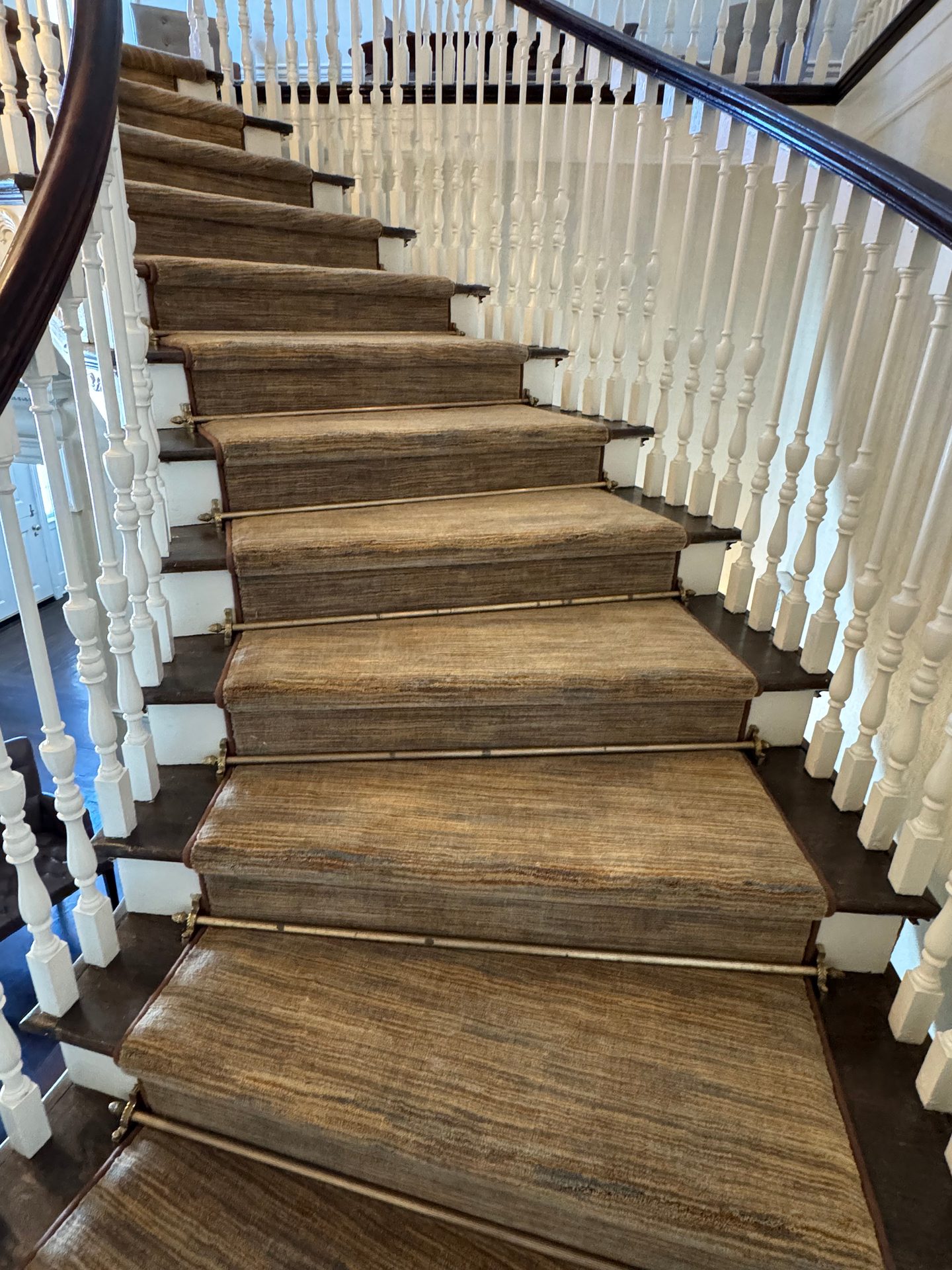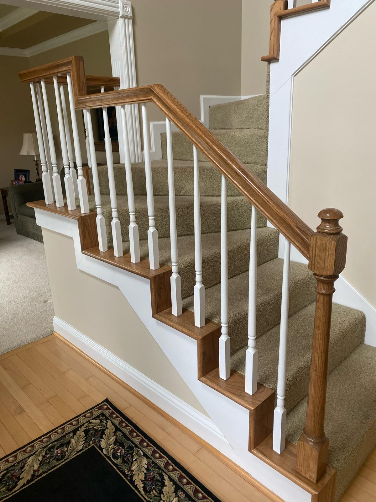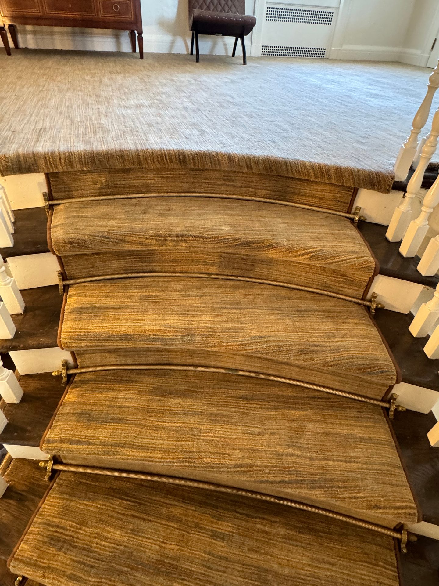 Challenges: The biggest challenge with this job was that it was a replacement of an existing stair runner. I had to make sure every piece covered the exact location as the client wanted to reuse existing brass stair rods. They also didn't want to see any damaged wood or faded wood from the sunlight.