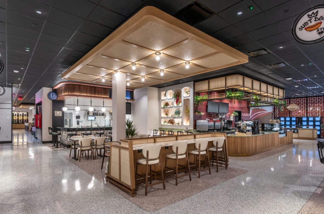 Unique Features: The installation is distinguished by its use of Duracryl Durabella Biobased Terrazzo, known for its sustainability and aesthetic appeal. The terrazzo was carefully crafted with a unique combination of materials to meet specific design criteria. The vibrant South Miami Beach feel was achieved through the use of bright pink accents against a predominantly white terrazzo base. This bold color choice, coupled with striking black terrazzo strips, created a visually captivating contrast that enhances the overall ambiance of the space.